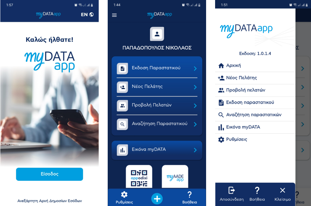 Google Play Store (για συσκευές με λογισμικό Android): https://play.google.com/store/apps/details?id=gr.aade.mydataapp
