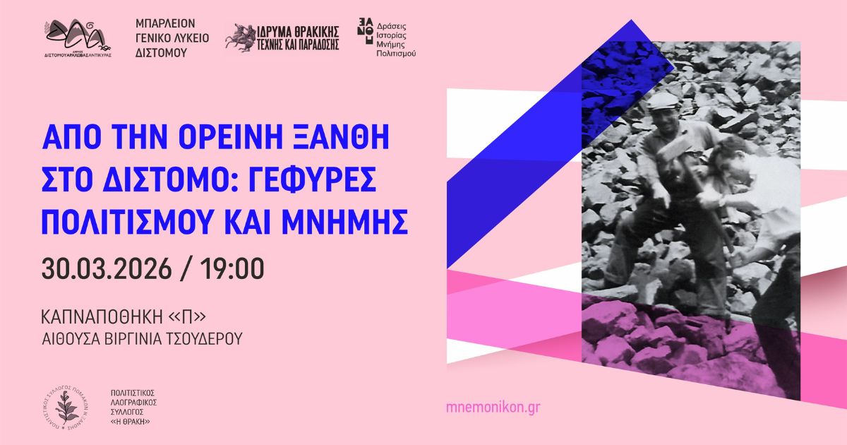 Στο πλαίσιο της συνεργασίας με τον Δήμο Διστόμου – Αράχοβας – Αντίκυρας, το πρόγραμμα «Δράσεις Ιστορίας Μνήμης Πολιτισμού» υποδέχεται στη Θράκη, από τις 29 Μαρτίου έως τις 1 Απριλίου 2026, μαθητές και εκπαιδευτικούς του Μπάρλειου Γενικού Λυκείου Διστόμου σε μια συνάντηση αφιερωμένη στην ιστορία, τη μνήμη και τον πολιτισμό, καθώς και στην ενίσχυση της περιφερειακής συνεργασίας.