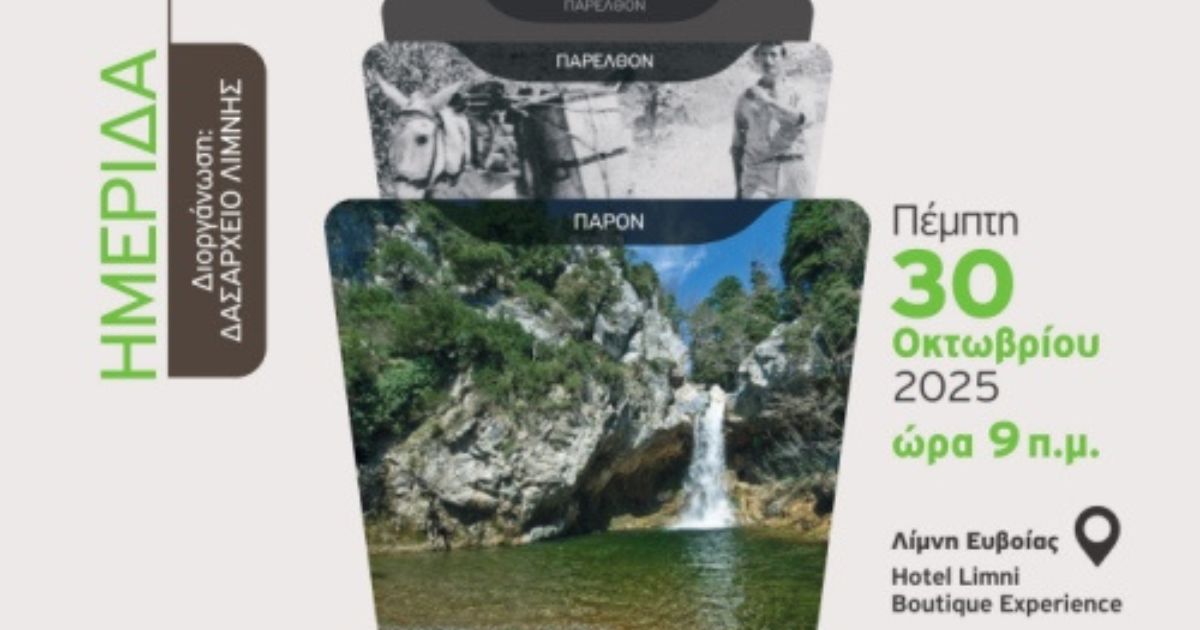 Το Δασαρχείο Λίμνης διοργανώνει εκπαιδευτική ημερίδα την Πέμπτη 30 Οκτωβρίου 2025 και ώρα 9:00 π.μ., στη Λίμνη Ευβοίας, στο Hotel Limni Boutique Experience. Η ημερίδα έχει ως κεντρικό θέμα: