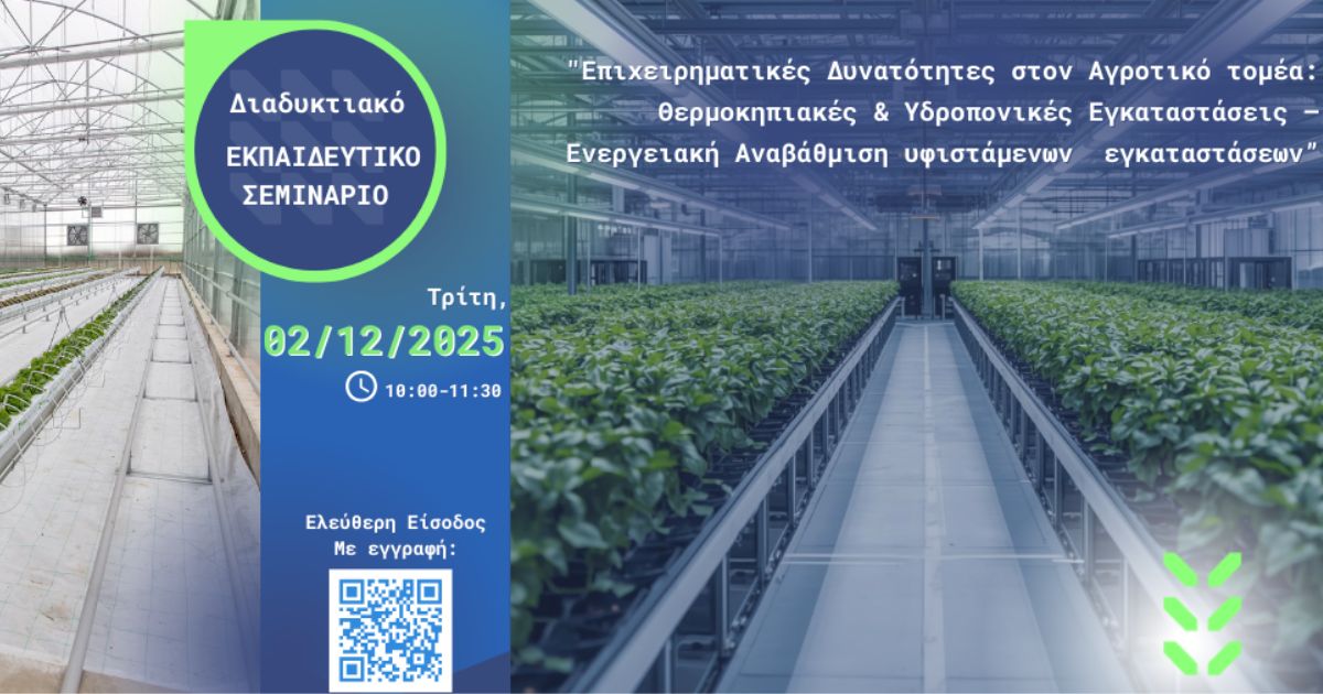 «Επιχειρηματικές Δυνατότητες στον Αγροτικό Τομέα: Θερμοκηπιακές & Υδροπονικές Εγκαταστάσεις – Ενεργειακή Αναβάθμιση Υφιστάμενων Εγκαταστάσεων».